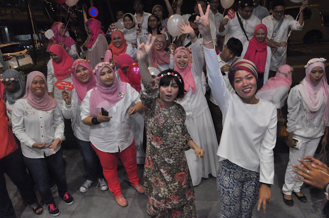 Majlis Sambutan Hari Lahir Nad Zainal ini bertemakan warna putih dan pink, serius semua kelihatan gojes okay. hehe Majlis ini bermula dalam jam 8 malam, semua prepare diluar tempat tu untuk suprisekan Nad Zainal. Semua nampak sangat teruja okay. Sebelum tu, saya dapat pakai Flower Headbands tu, alololo.. cantik okay. Thanks kepada yang memberi. :p